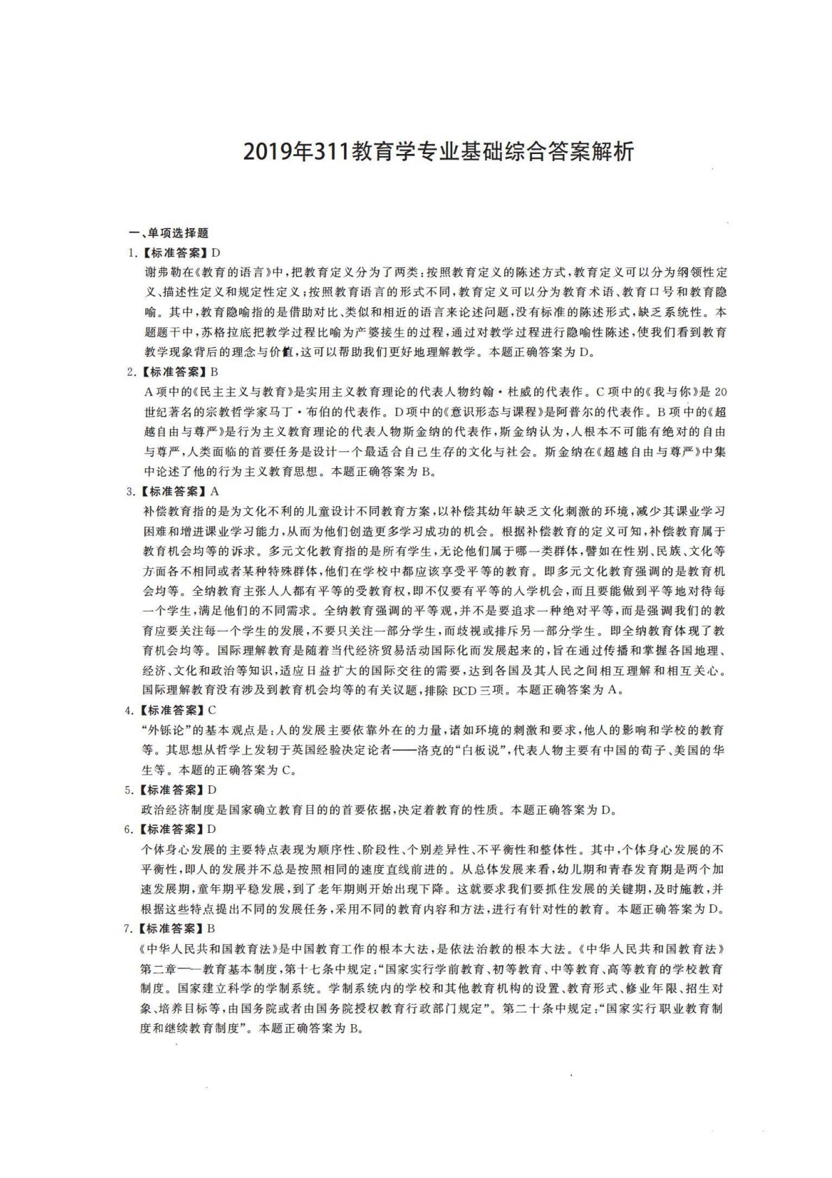 青岛大学333教育综合2019年真题答案