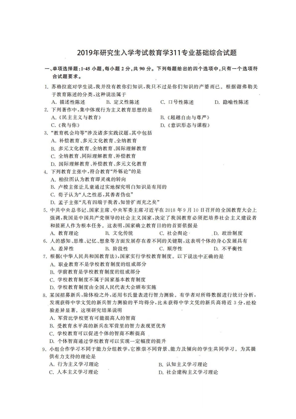 青岛大学333教育综合2019年真题