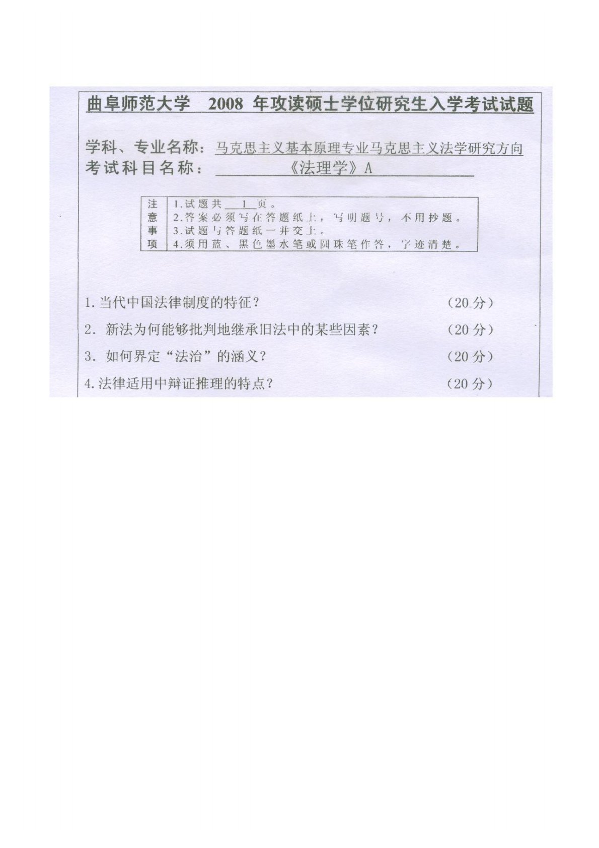 曲阜师范大学817法理学(专硕)2008年真题