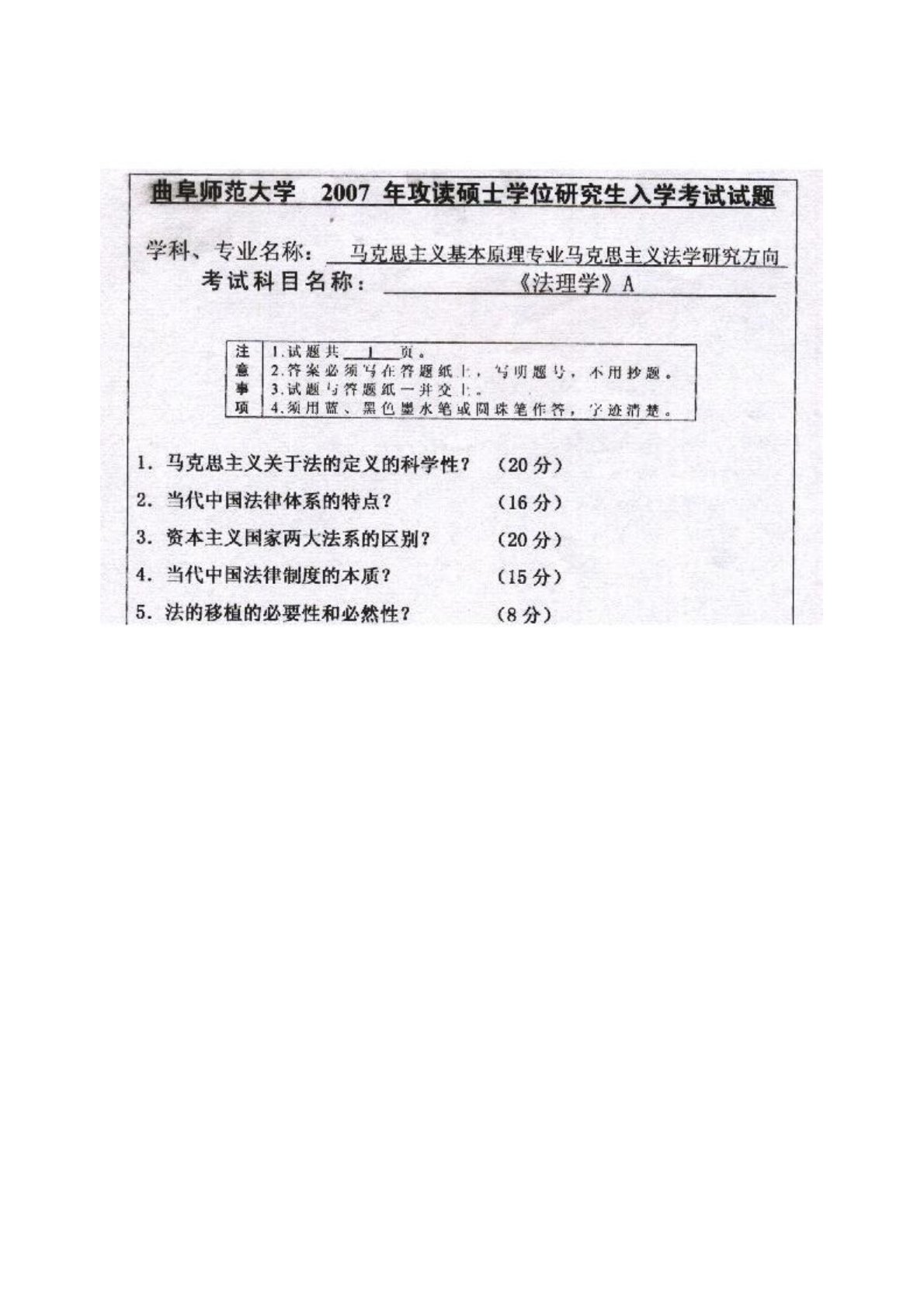 曲阜师范大学817法理学(专硕)2007年真题