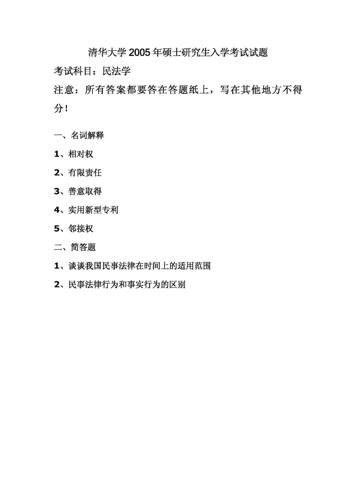 清华大学978专业综合卷三(含民法学、商法学)2005年真题