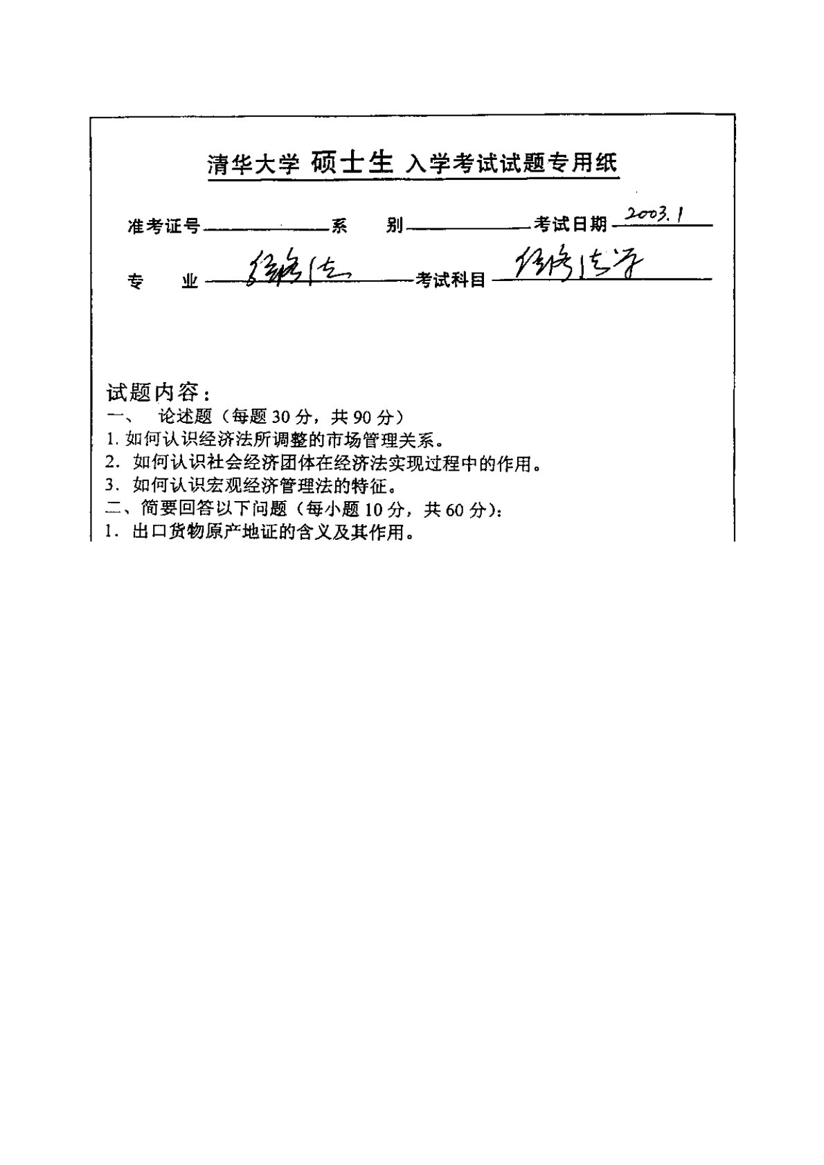 清华大学978专业综合卷三(含民法学、商法学)2003年真题