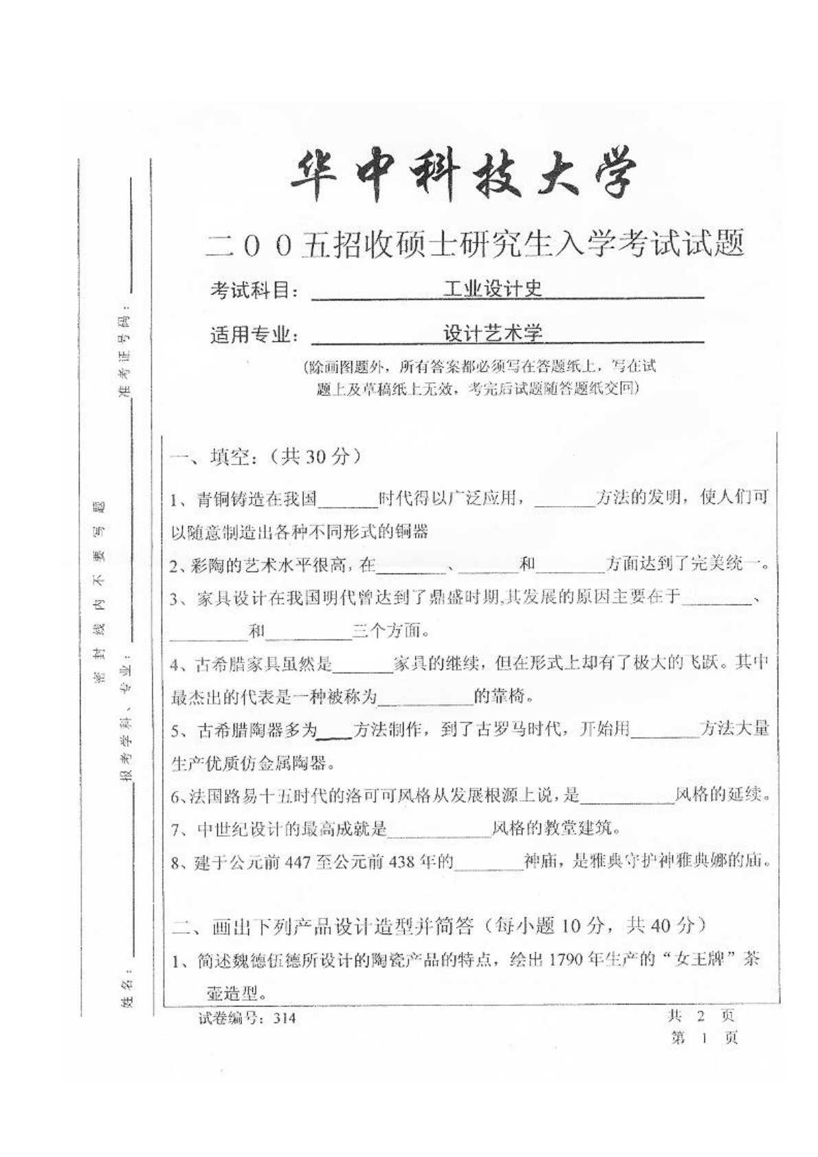 华中科技大学626工业设计史论(工业设计史、工业设计概论)2005年真题
