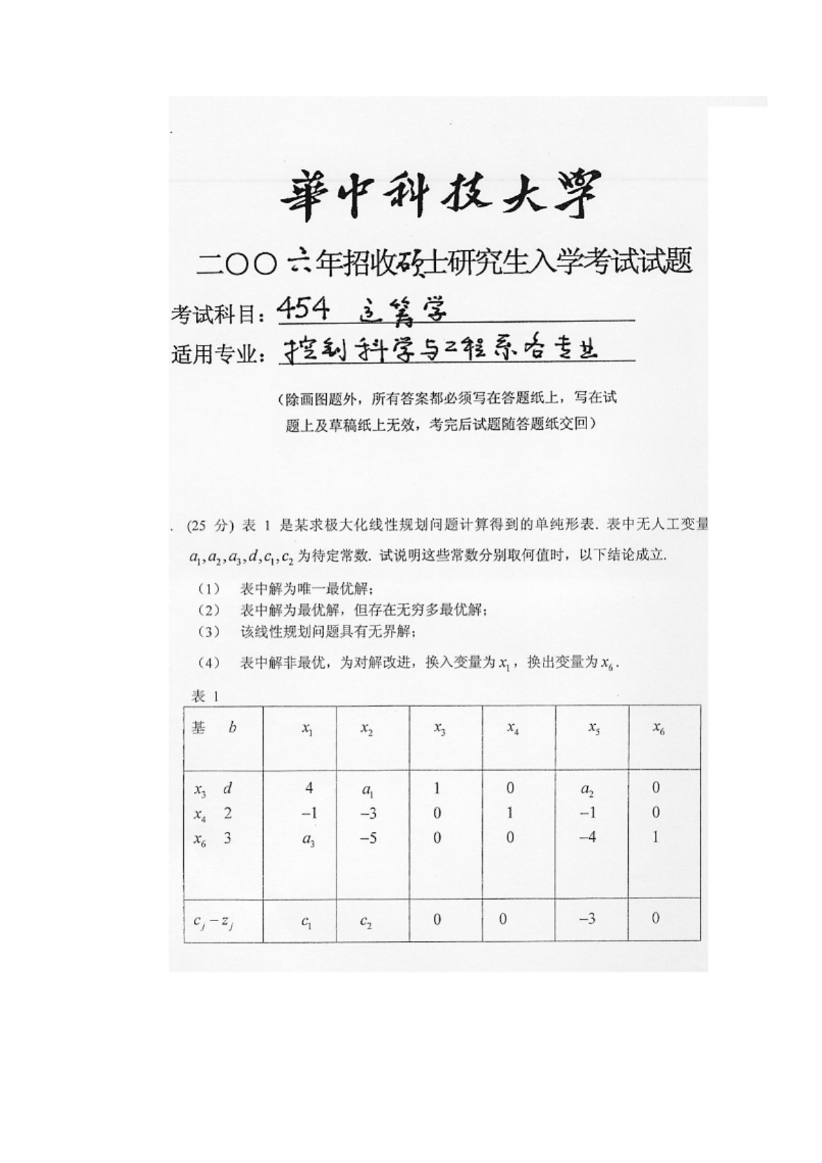 华中科技大学851运筹学(一)2006年真题1
