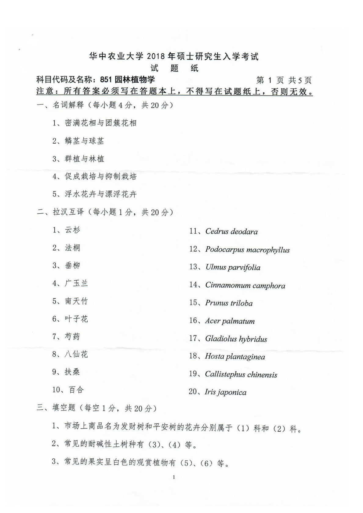 华中农业大学414植物生理学与生物化学2018年考研真题