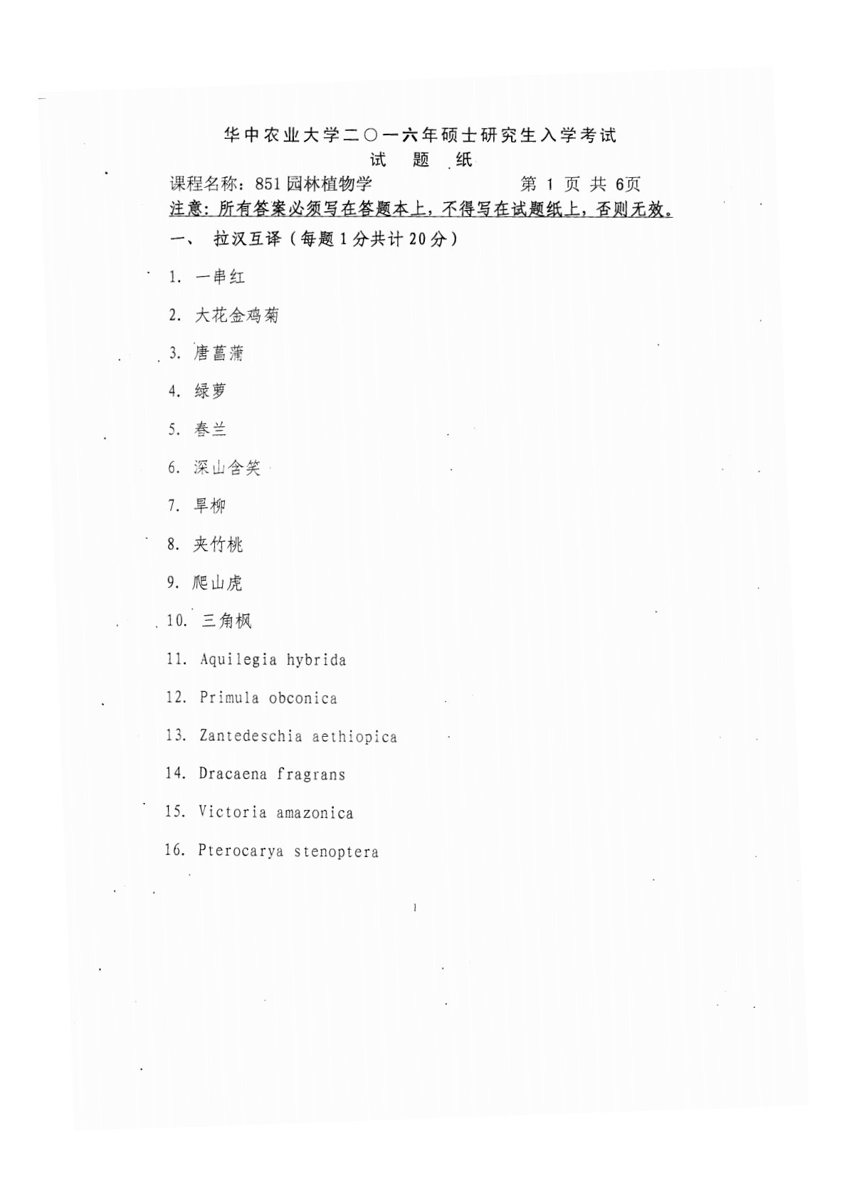 华中农业大学414植物生理学与生物化学2016年考研真题