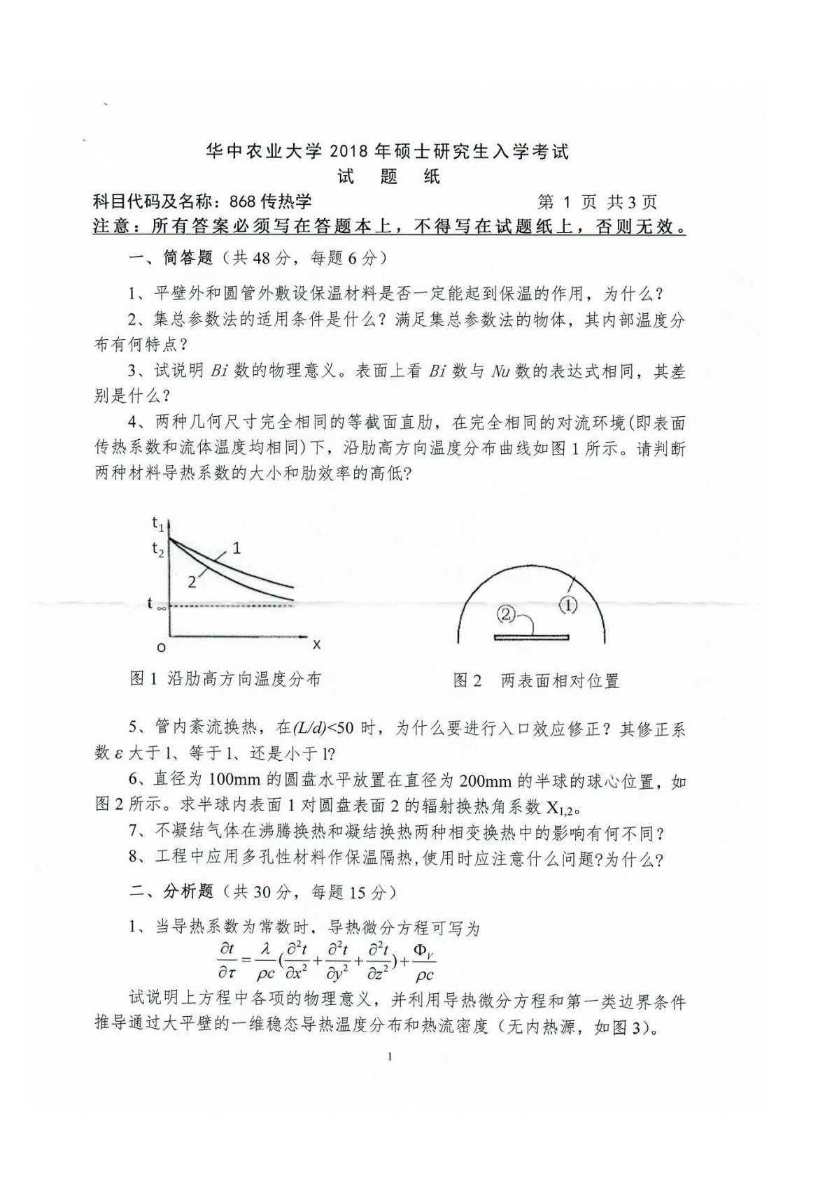 华中农业大学传热学2018年真题