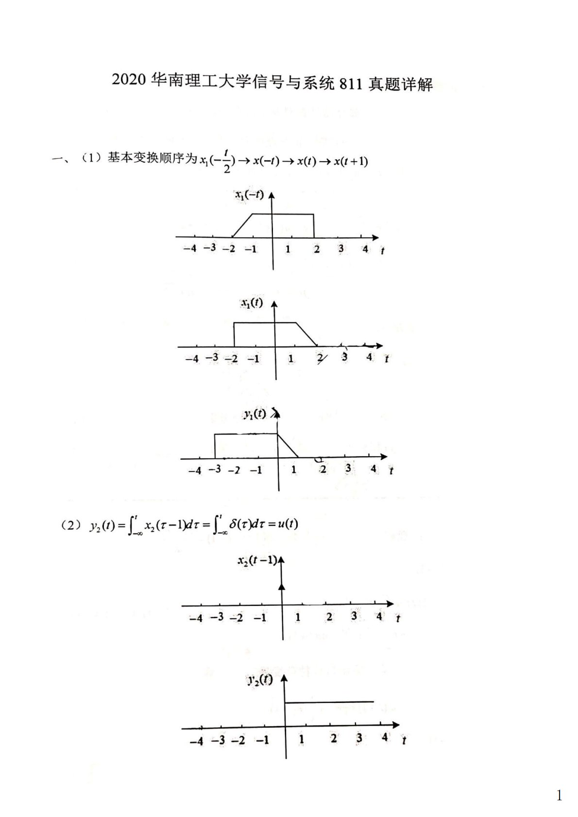 华南理工大学811信号与系统2020年真题答案