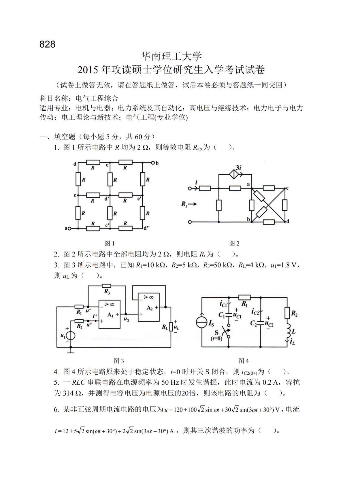 华南理工大学926电气工程综合2015年考研真题
