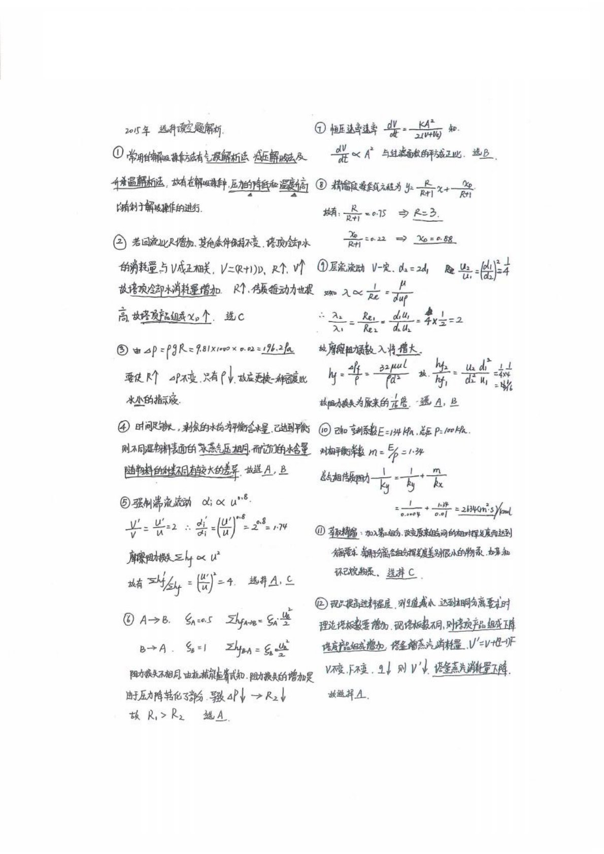 华南理工大学821化工原理2015年考研真题答案