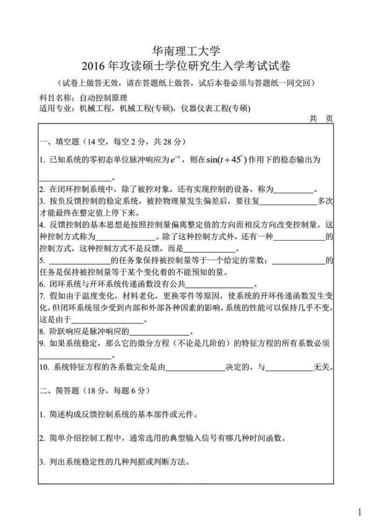 华南理工大学807材料力学2016年真题1