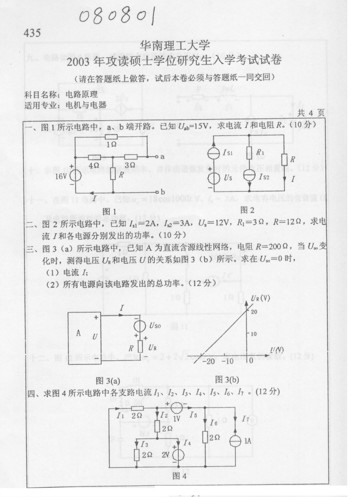 华南理工大学2003年812电路原理考研真题