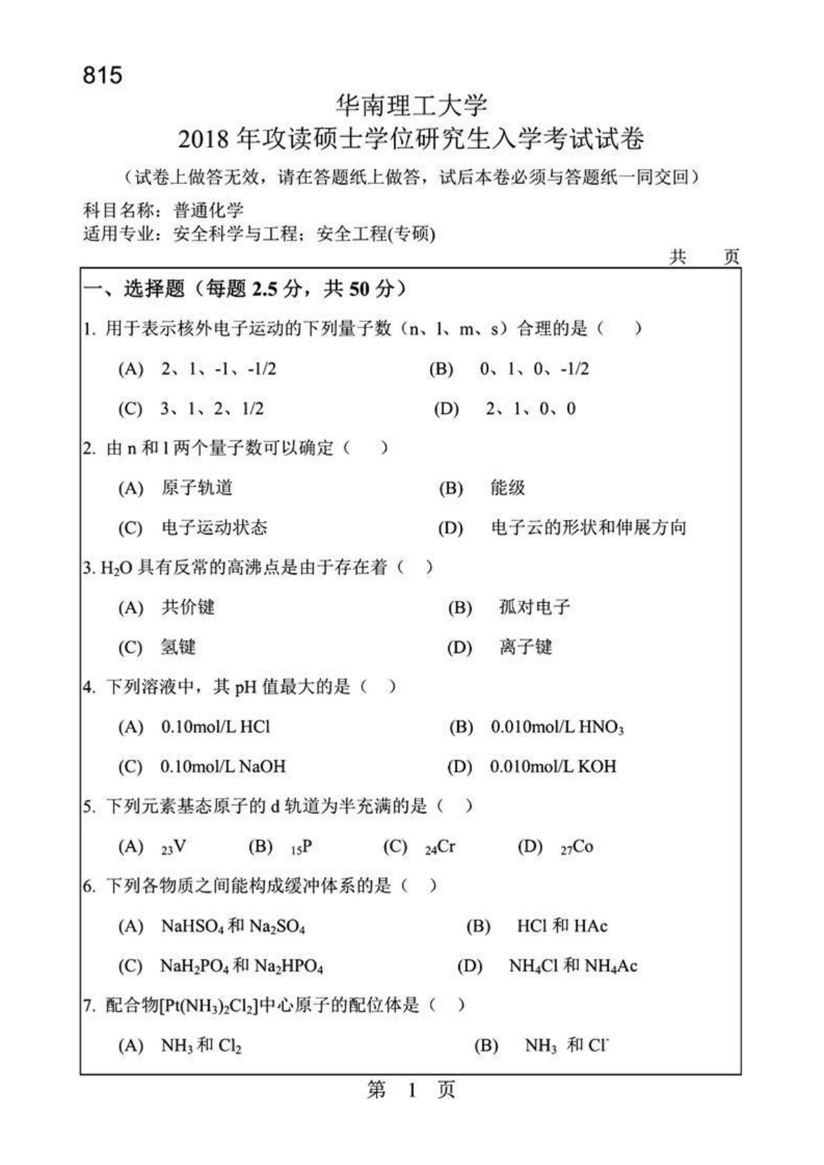 华南理工大学805安全系统工程2018年考研真题
