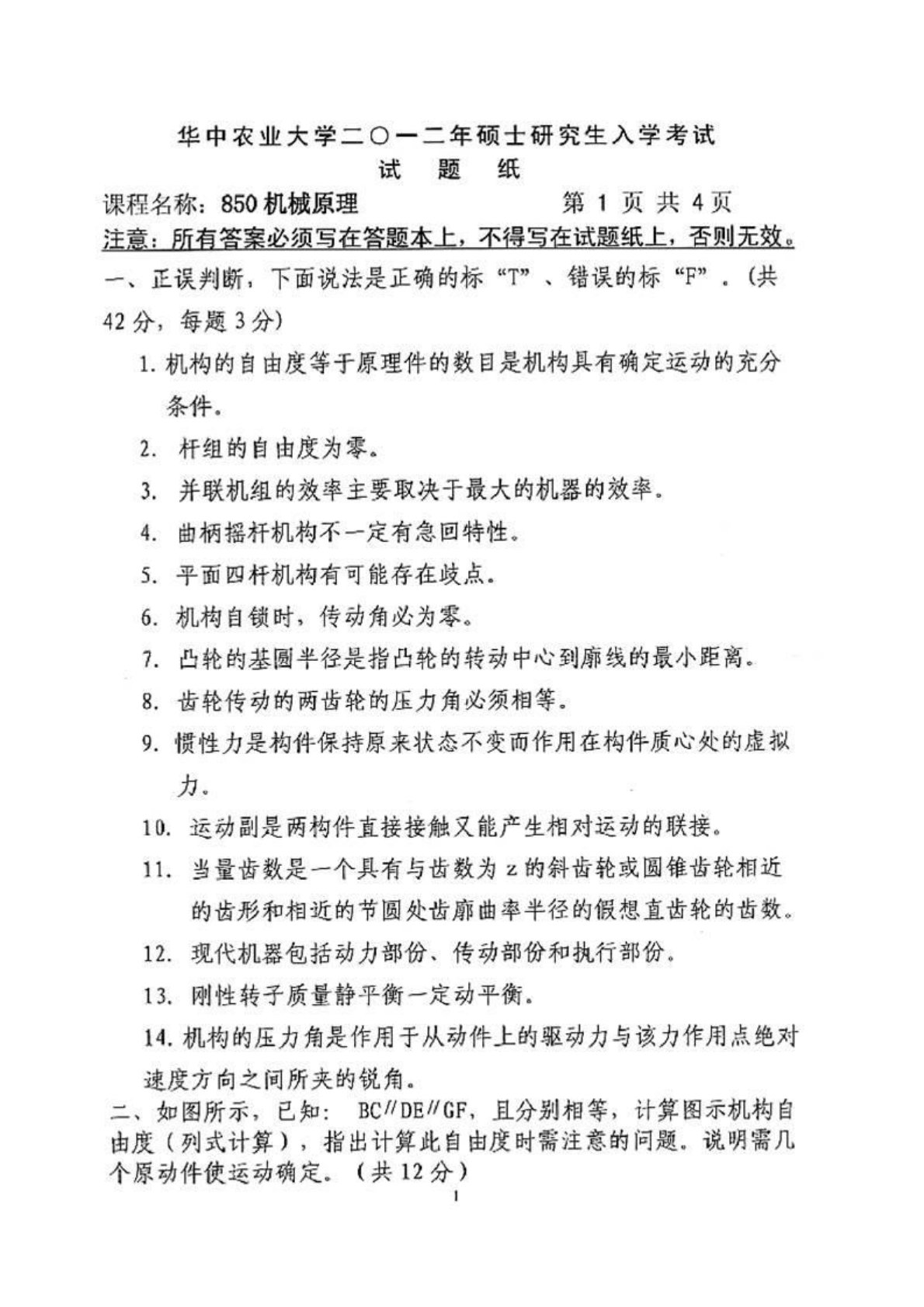 华中农业大学机械设计(复试)2012年考研真题