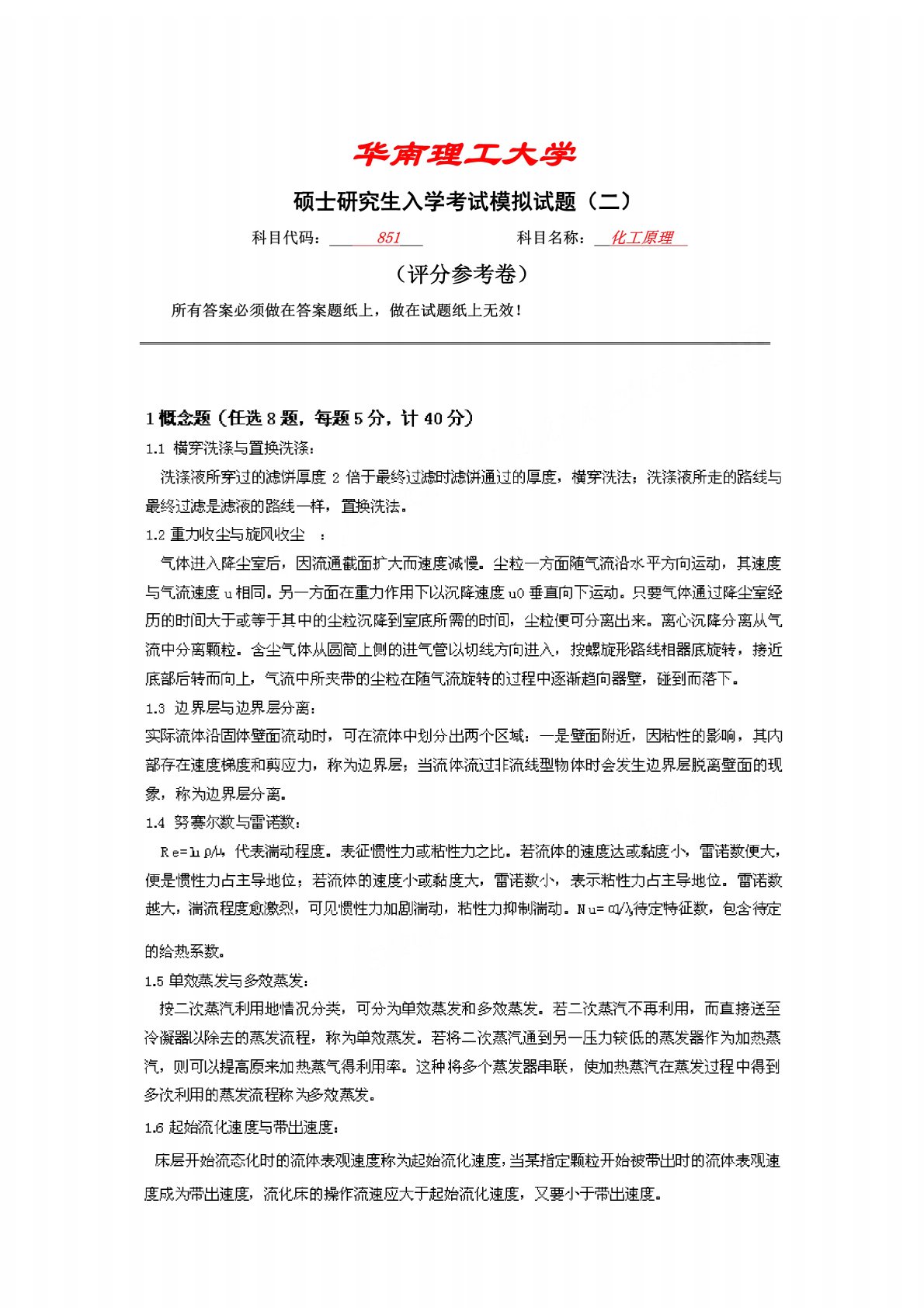 华南理工大学821化工原理模拟试题2答案解析