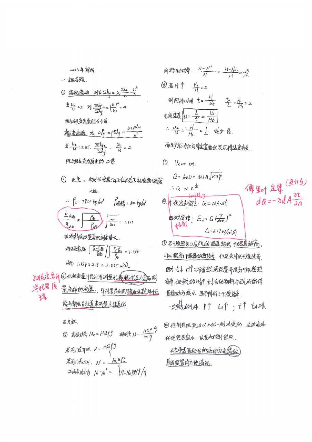 华南理工大学821化工原理2005年考研真题答案解析