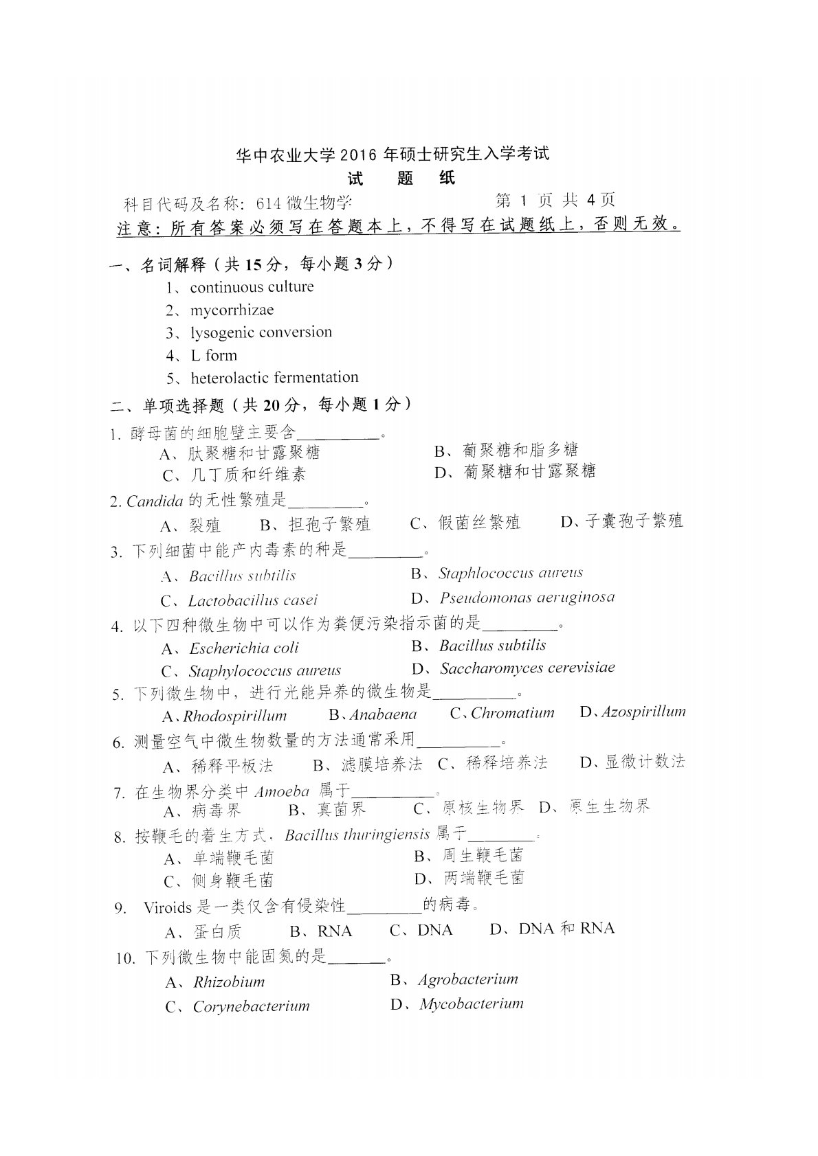 华中农业大学634细胞生物学2016年考研真题