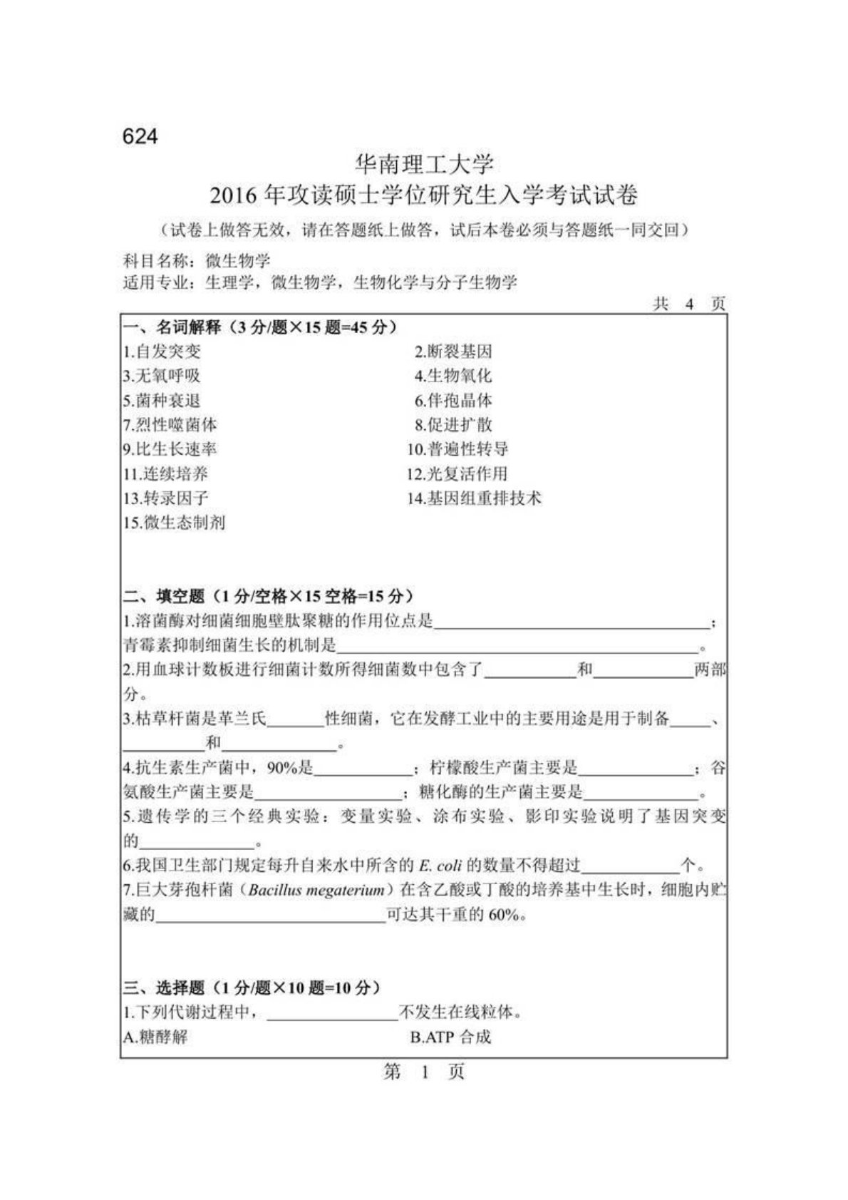 华南理工大学627微生物学2016年考研真题