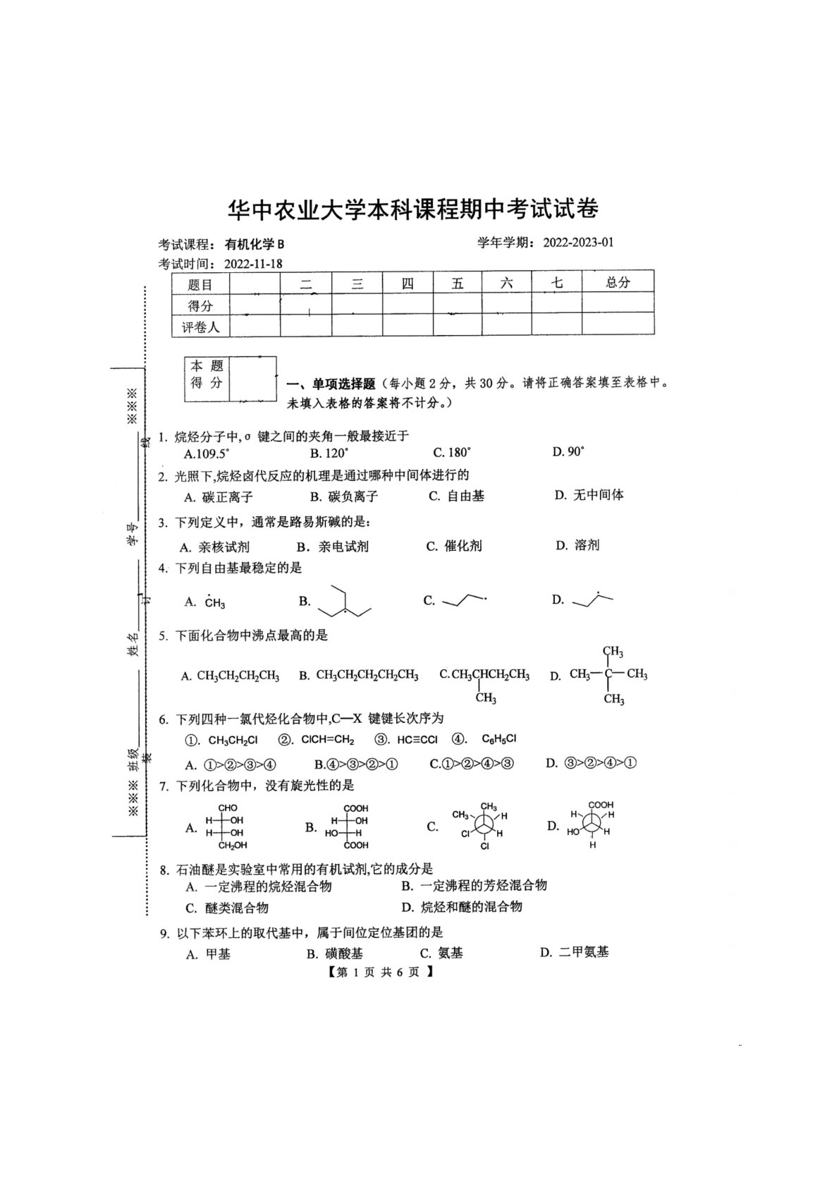 华中农业大学856有机化学期末试卷3