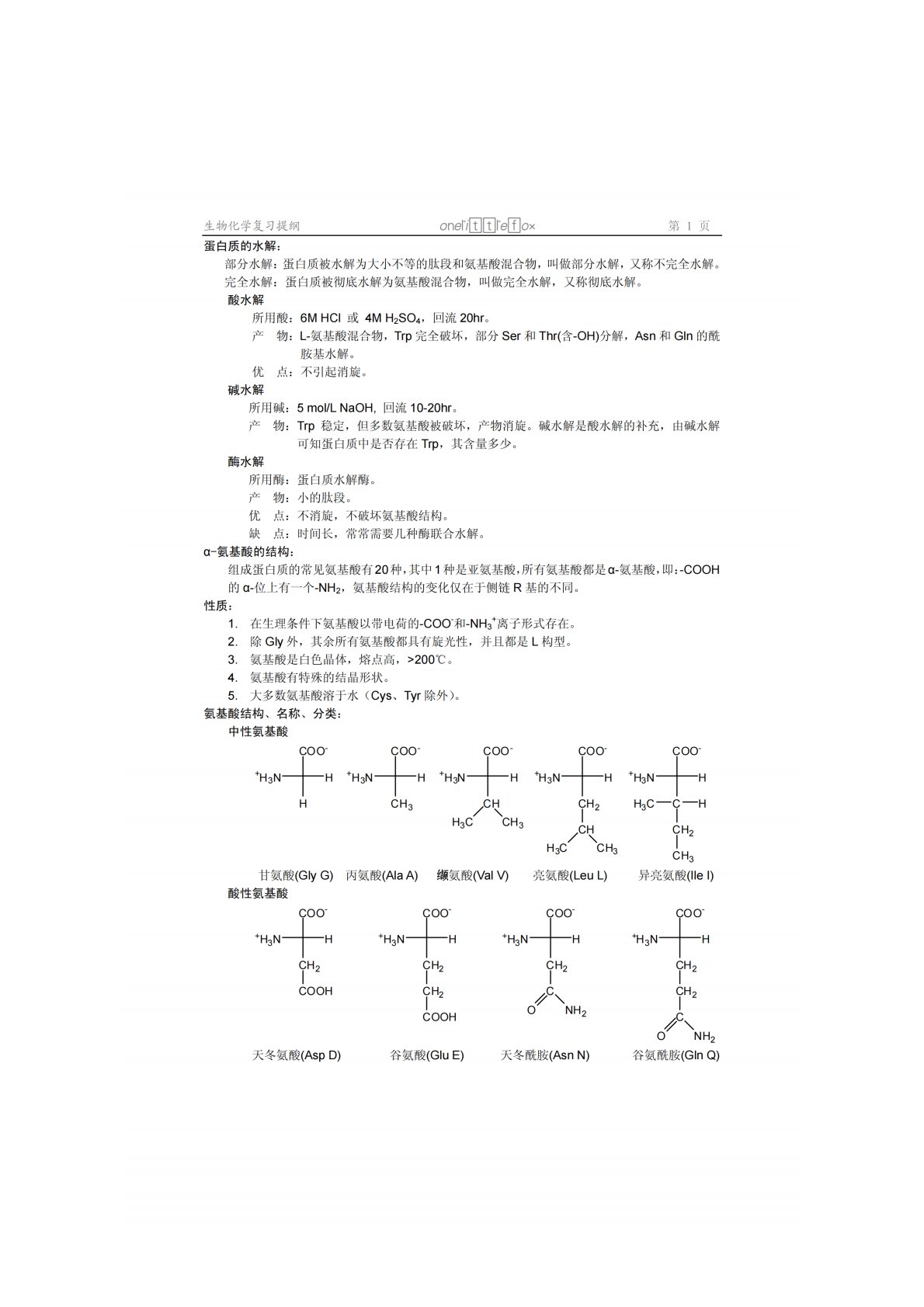 华中农业大学802生物化学复习提纲(1)