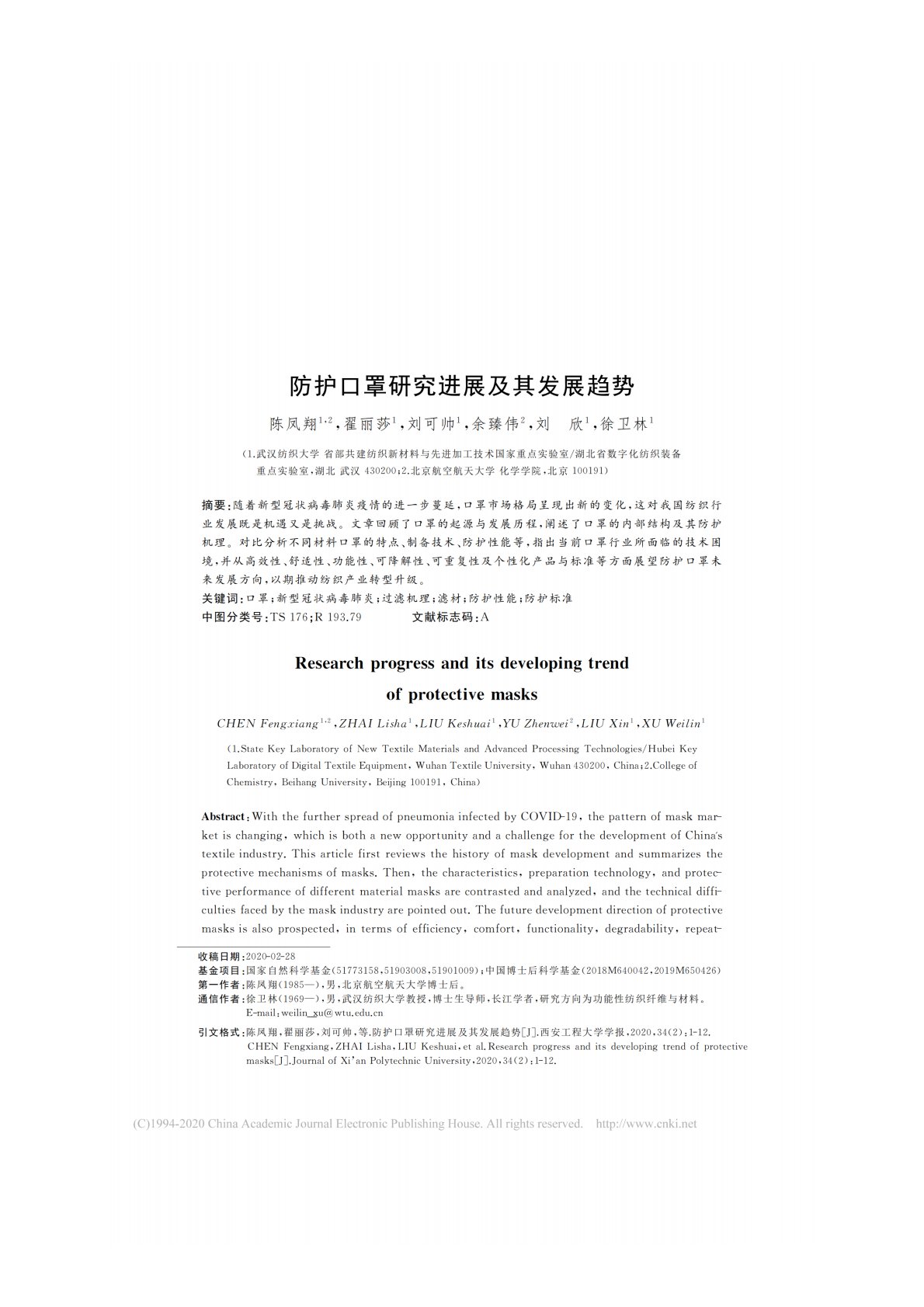 华中农业大学802生物化学防护口罩研究进展及其发展趋势