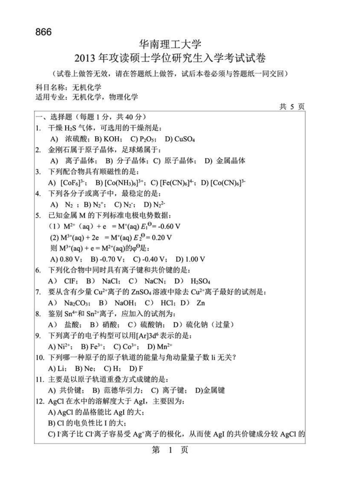 华南理工大学820有机化学2013年考研真题1