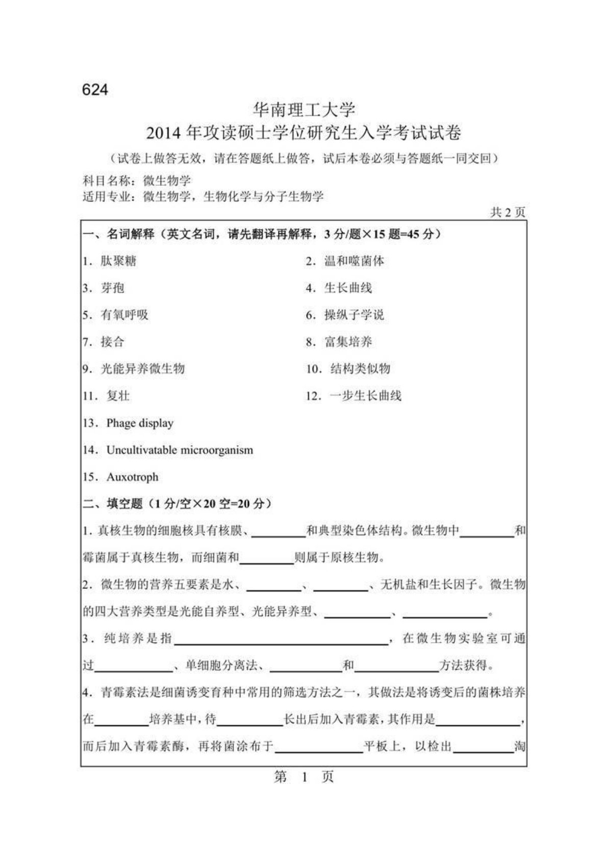 华南理工大学627微生物学2014年考研真题