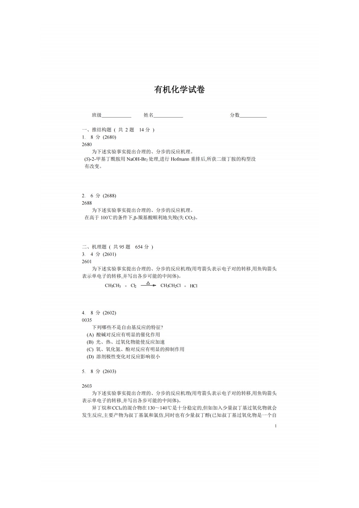 华中农业大学856有机化学机理题2601-2700!