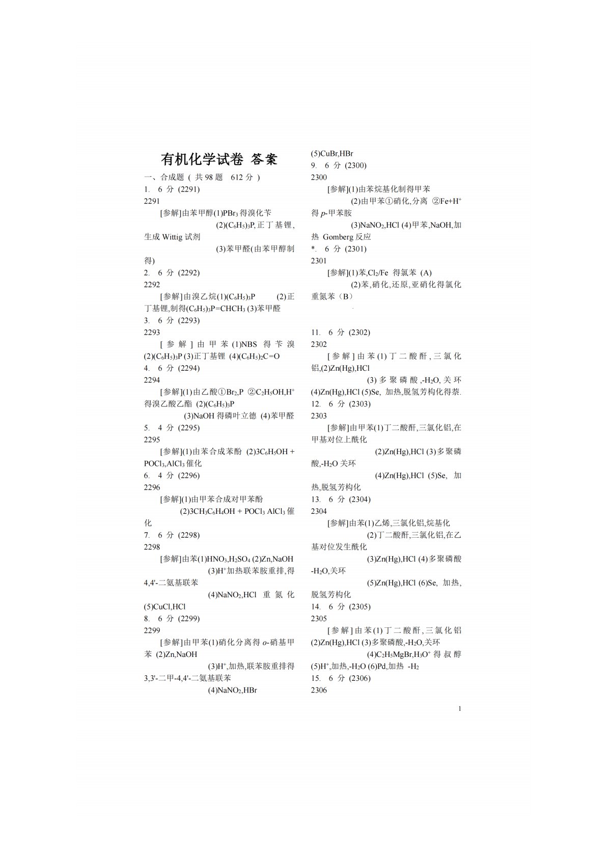 华中农业大学856有机化学合成题答案2291-2390!