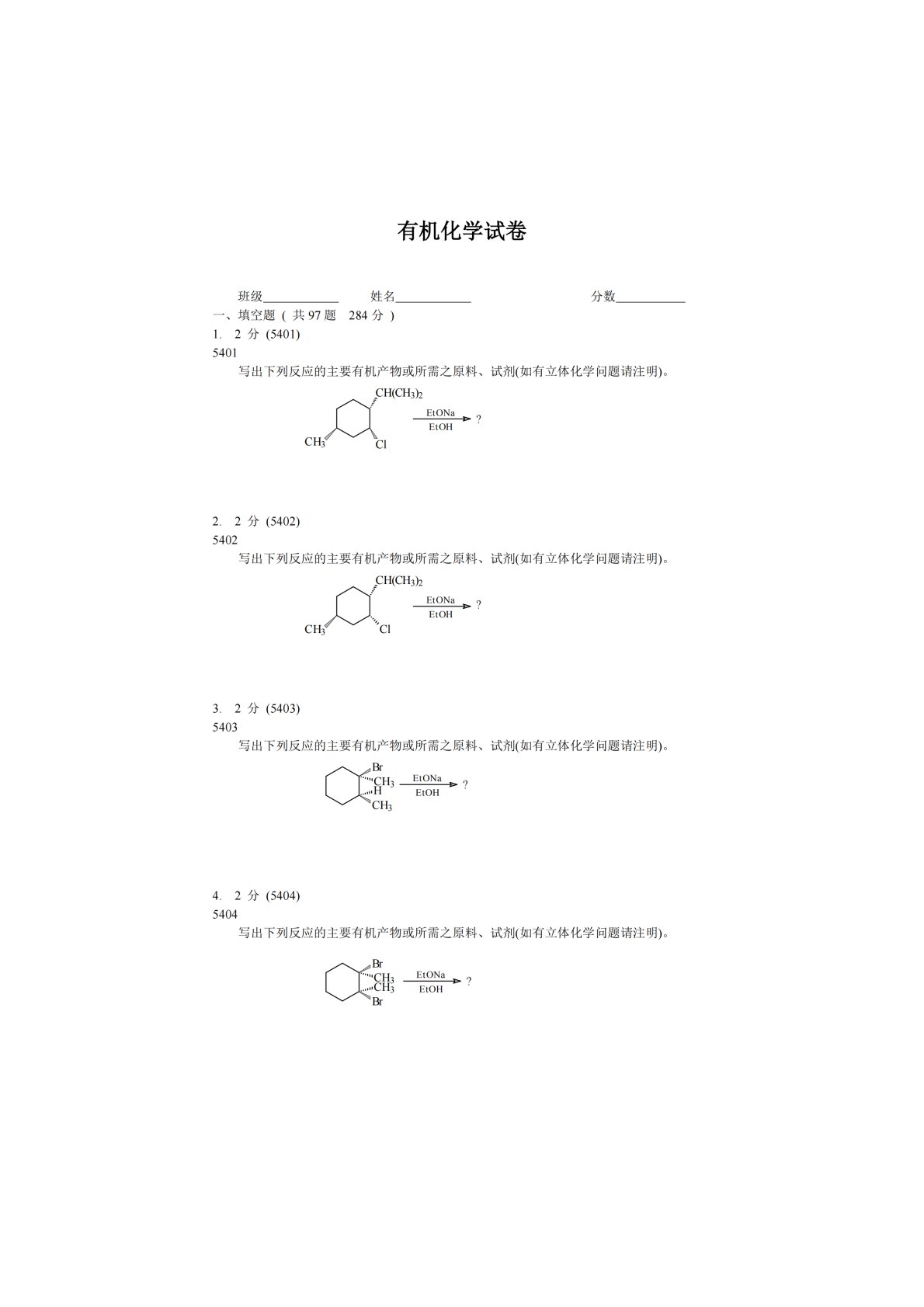 华中农业大学856有机化学填空题5401-5500!
