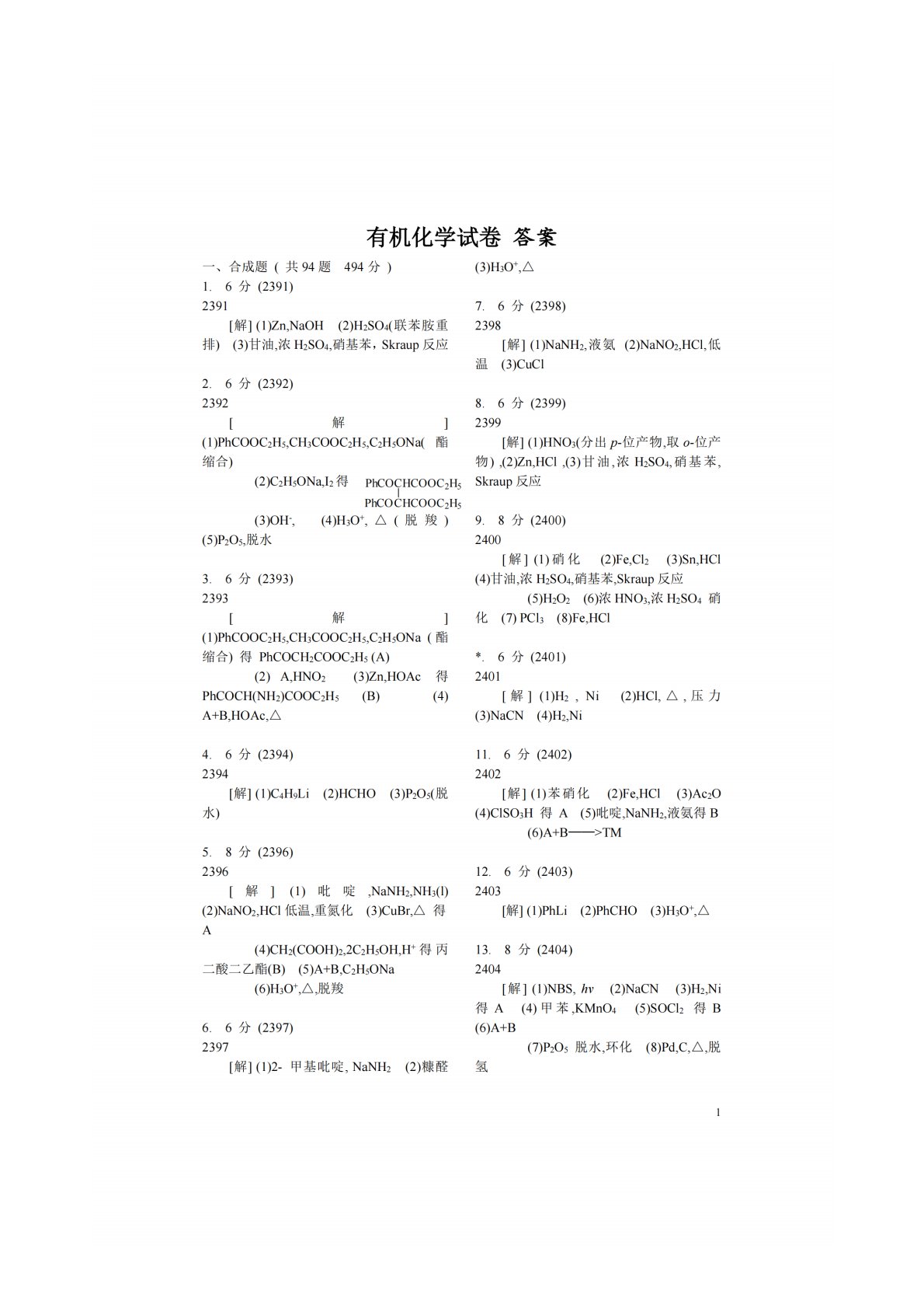 华中农业大学856有机化学合成题答案2391-2500!