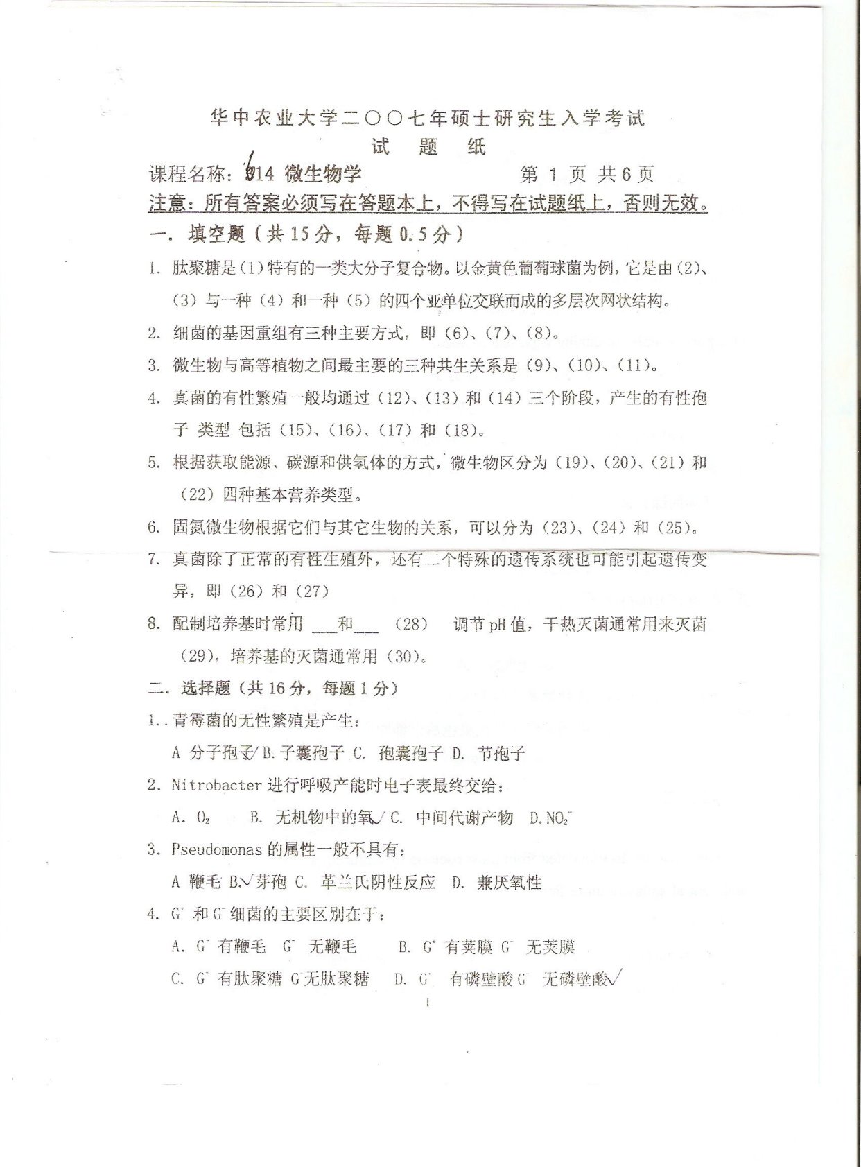 华中农业大学634细胞生物学2007年考研真题