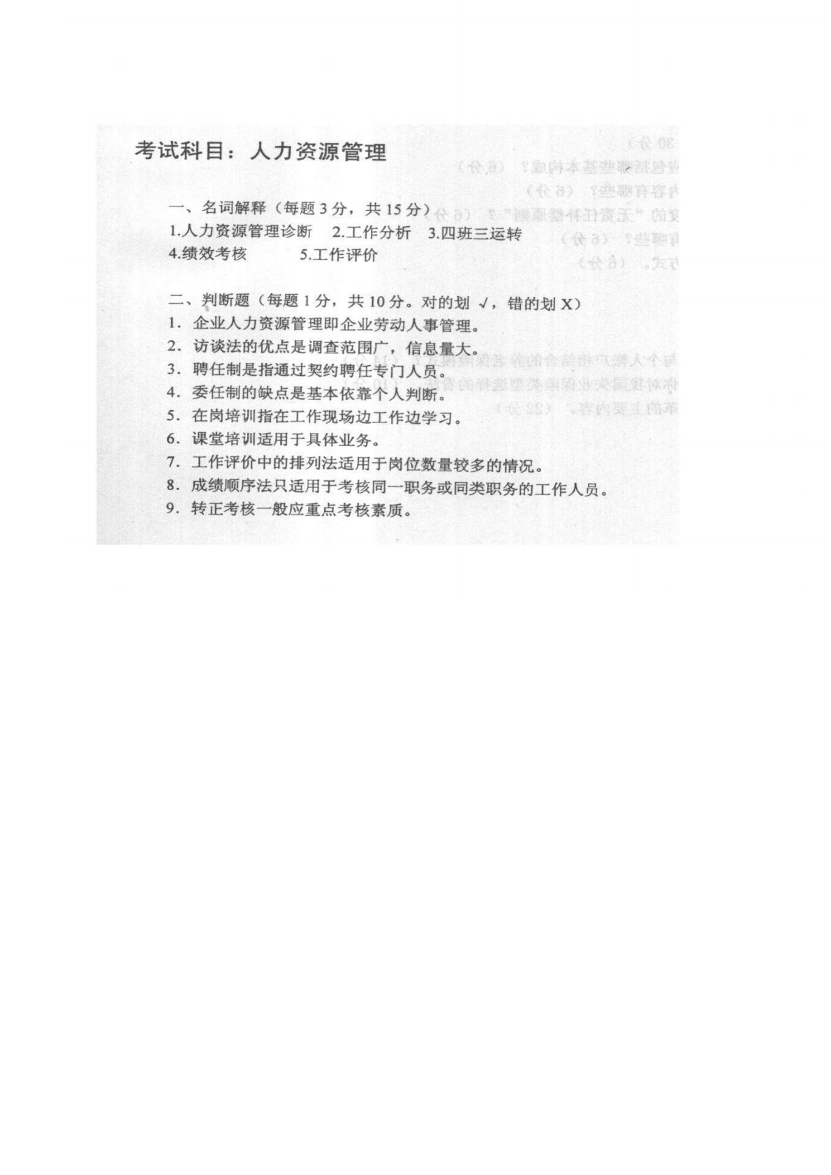 华北电力大学(北京)人力资源管理(同等学力加试科目)2001年真题