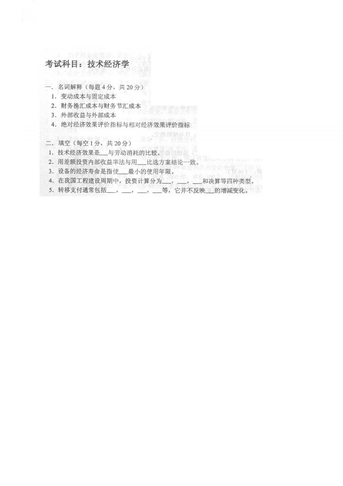 华北电力大学(北京)技术经济学2000年真题