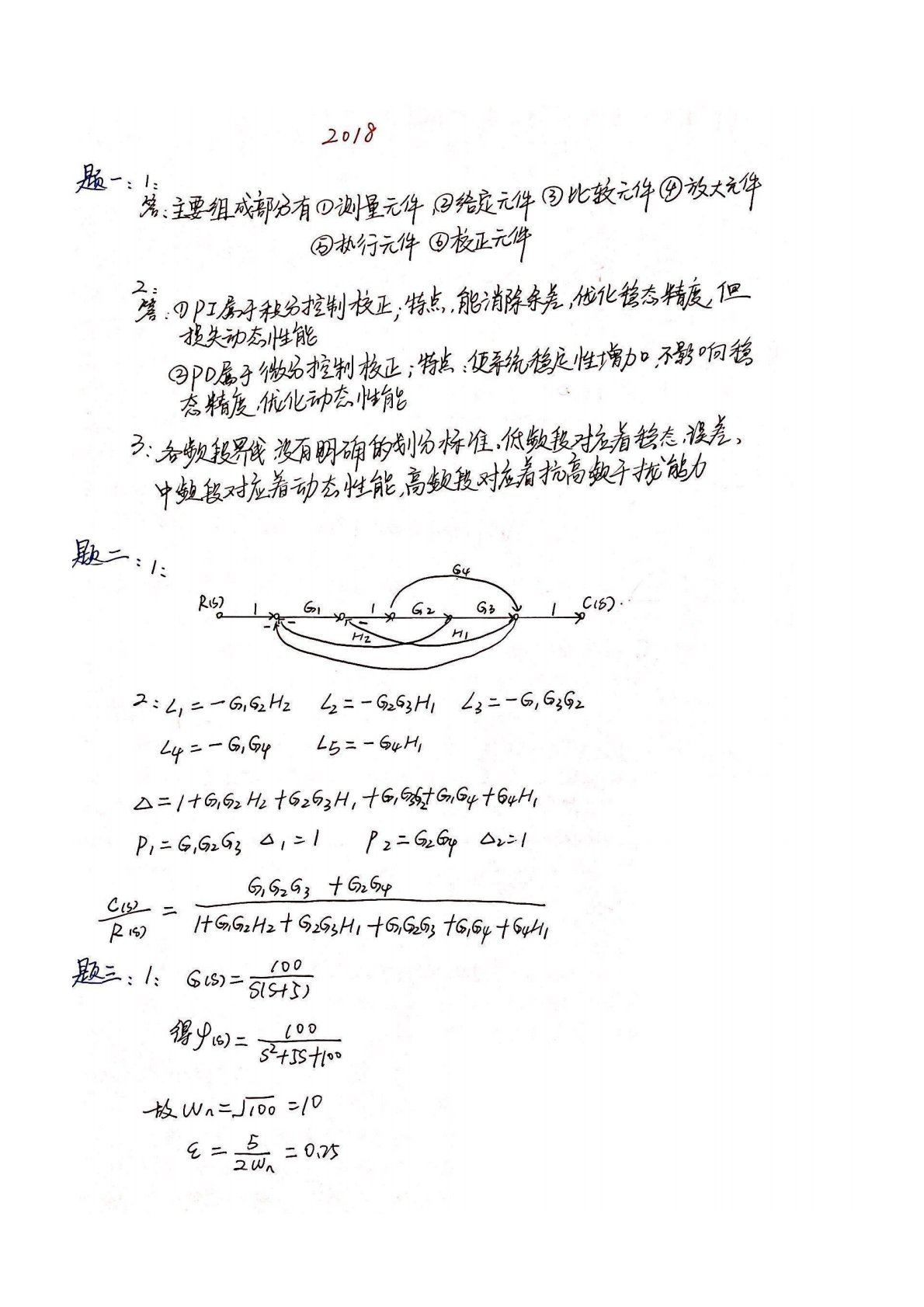 华东交通大学811自动控制理论2018年真题答案手写版