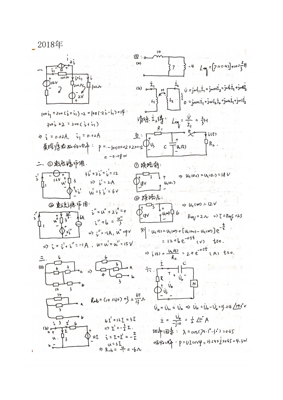 华东交通大学810电路2018年真题答案手写版