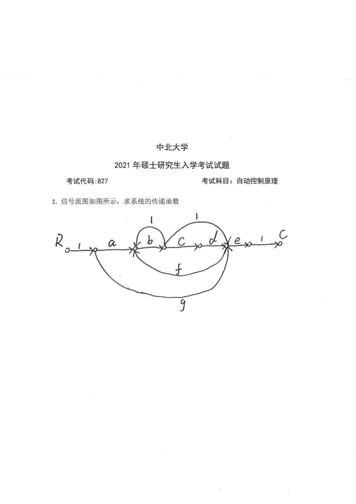 中北大学827自动控制原理2021年考研真题