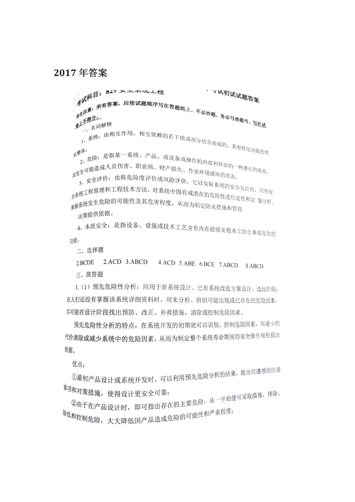 中国矿业大学(北京)829安全系统工程2017年真题答案