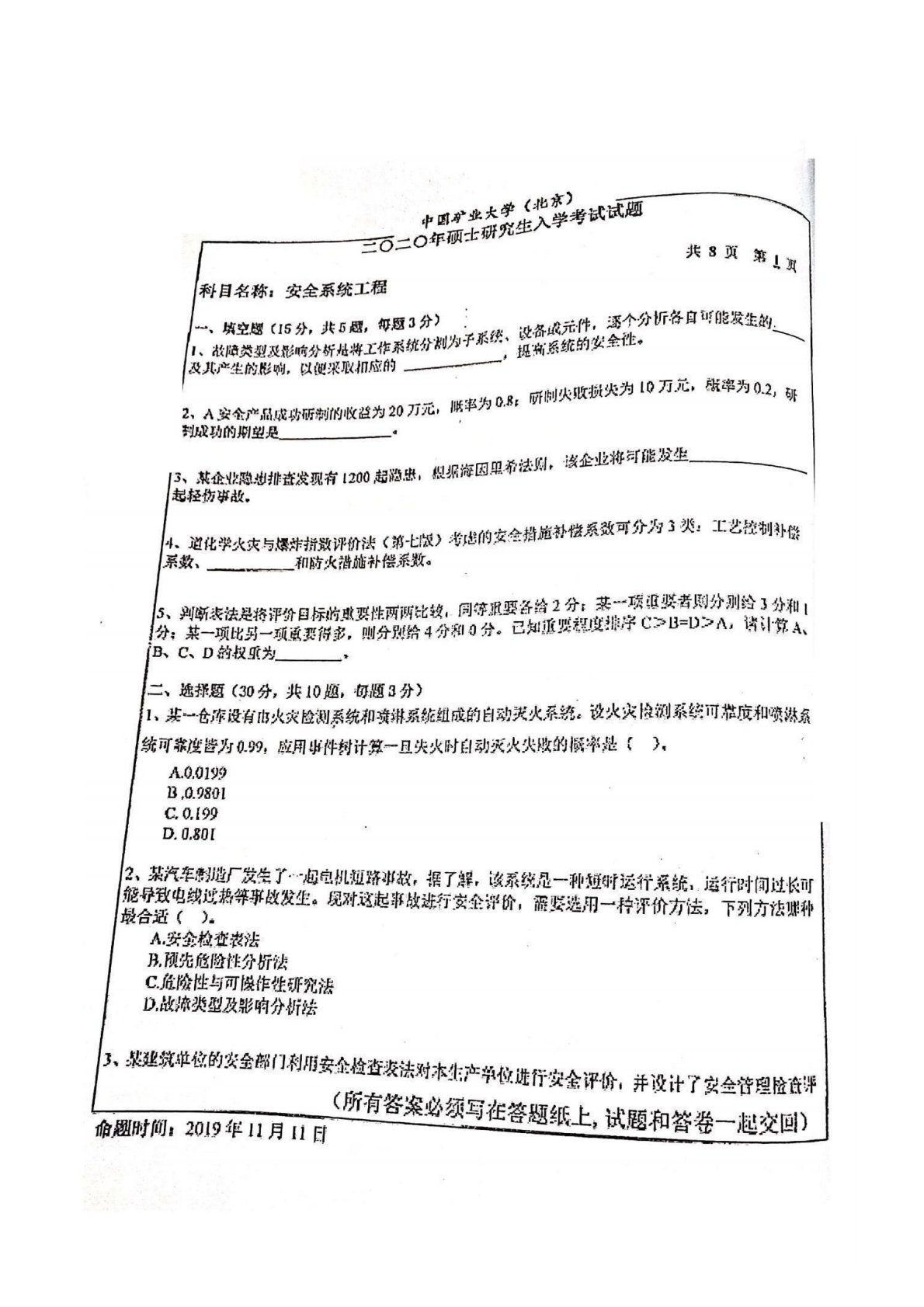 中国矿业大学(北京)829安全系统工程2020年真题1
