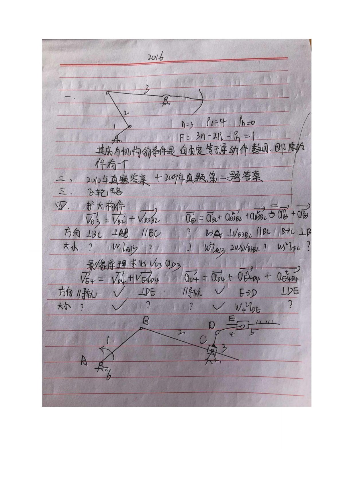 中国石油大学(华东)822机械原理2016真题答案手写版