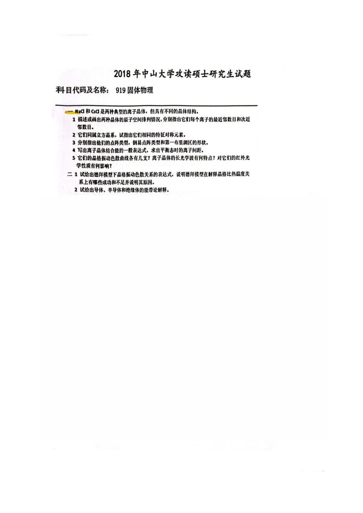 中山大学883固体物理A2018年真题