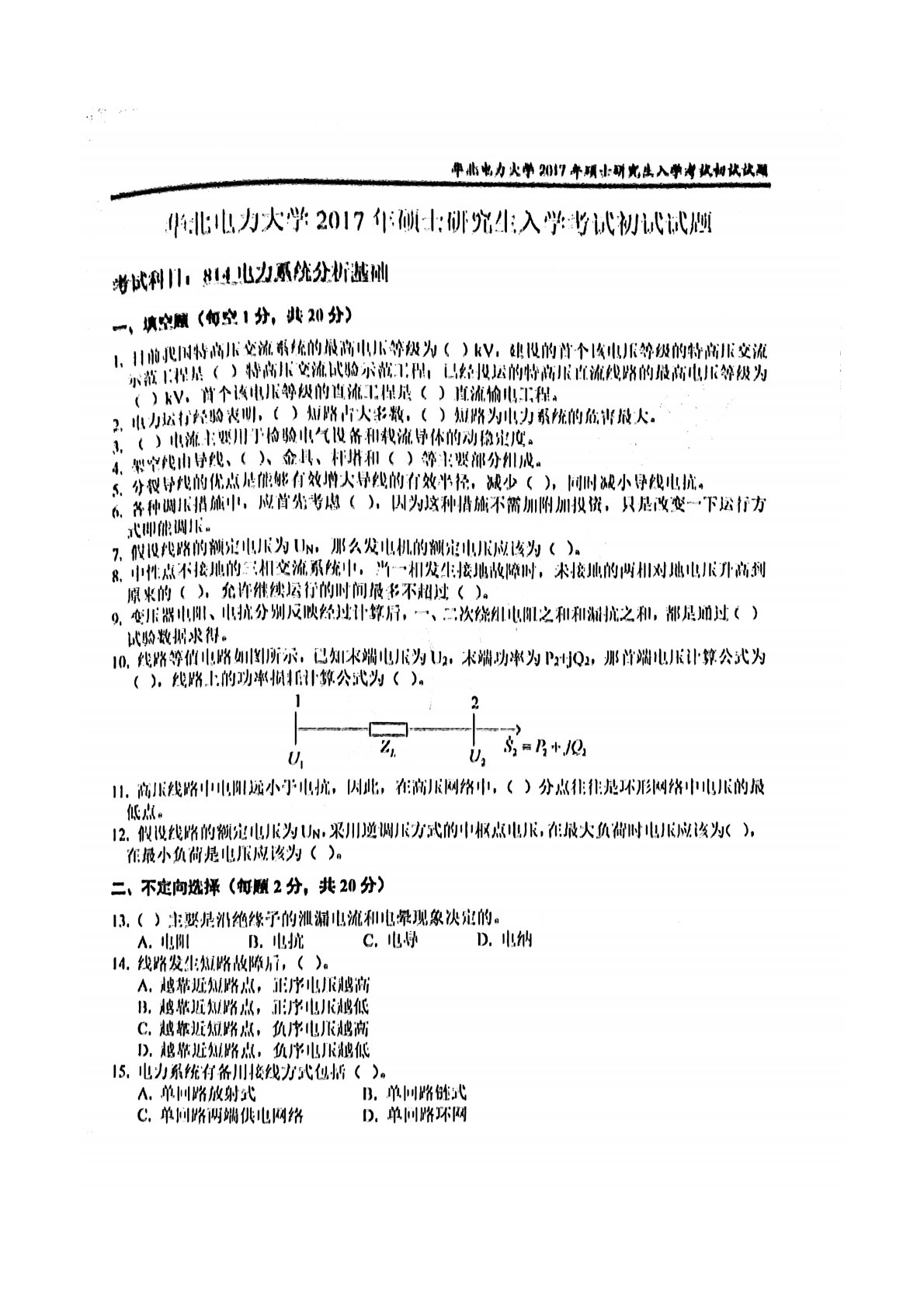 华北电力大学(北京)811电力系统分析基础2017年真题