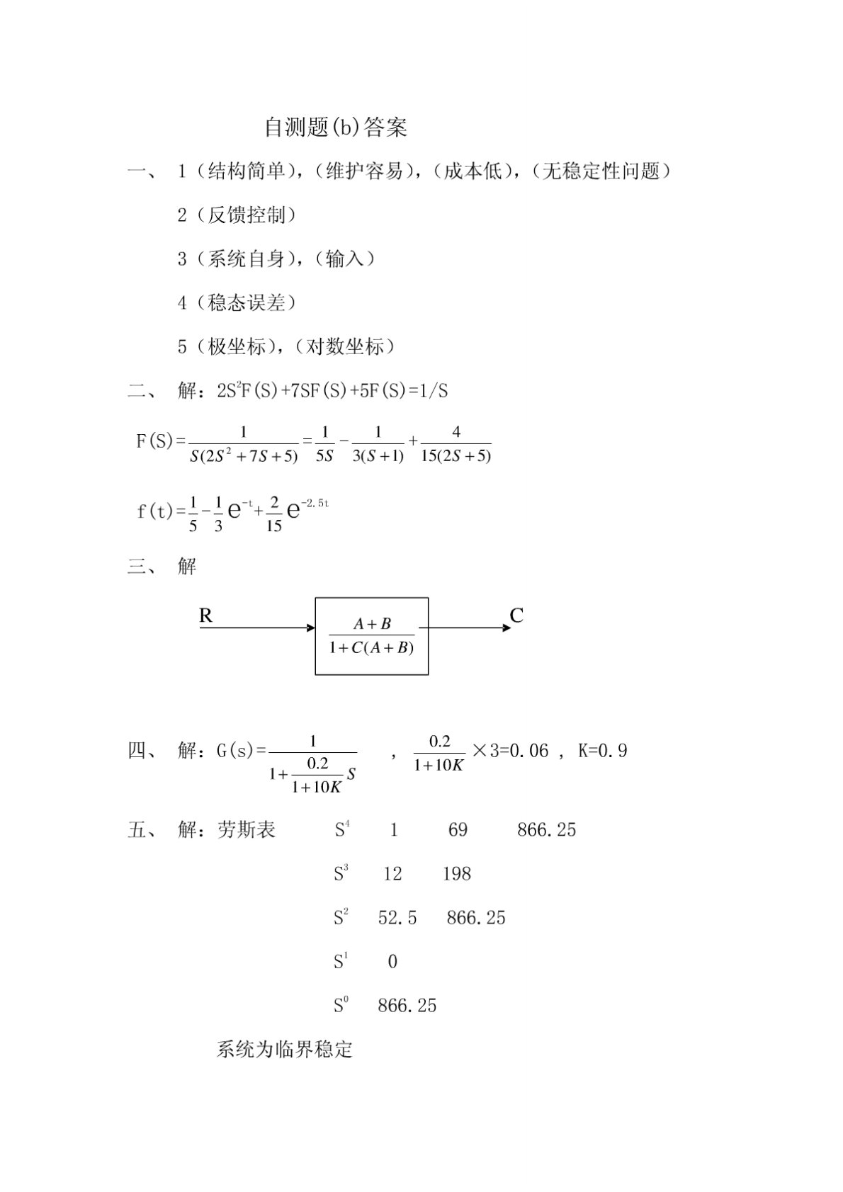 华东理工大学816控制原理自测题答案b