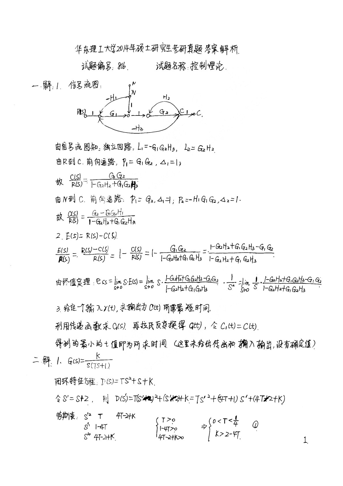华东理工大学816控制原理2014年考研真题答案