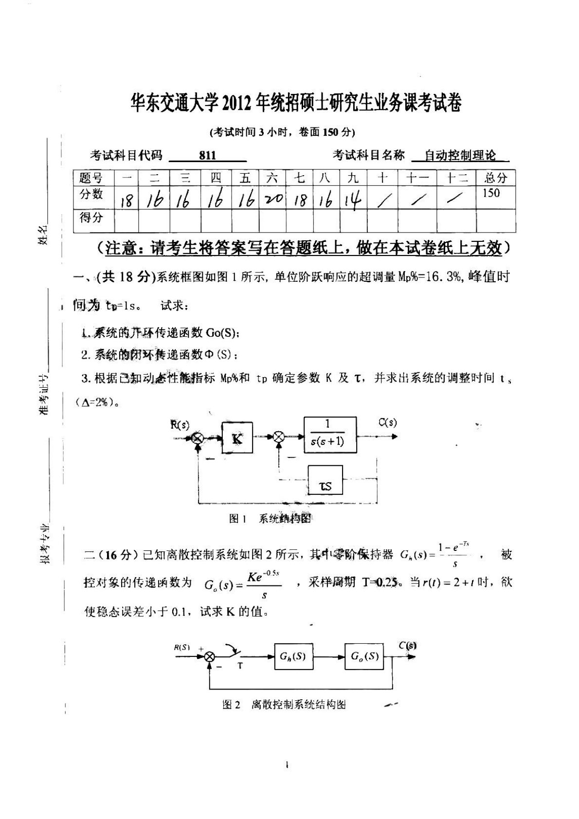 华东交通大学811自动控制理论2012年真题