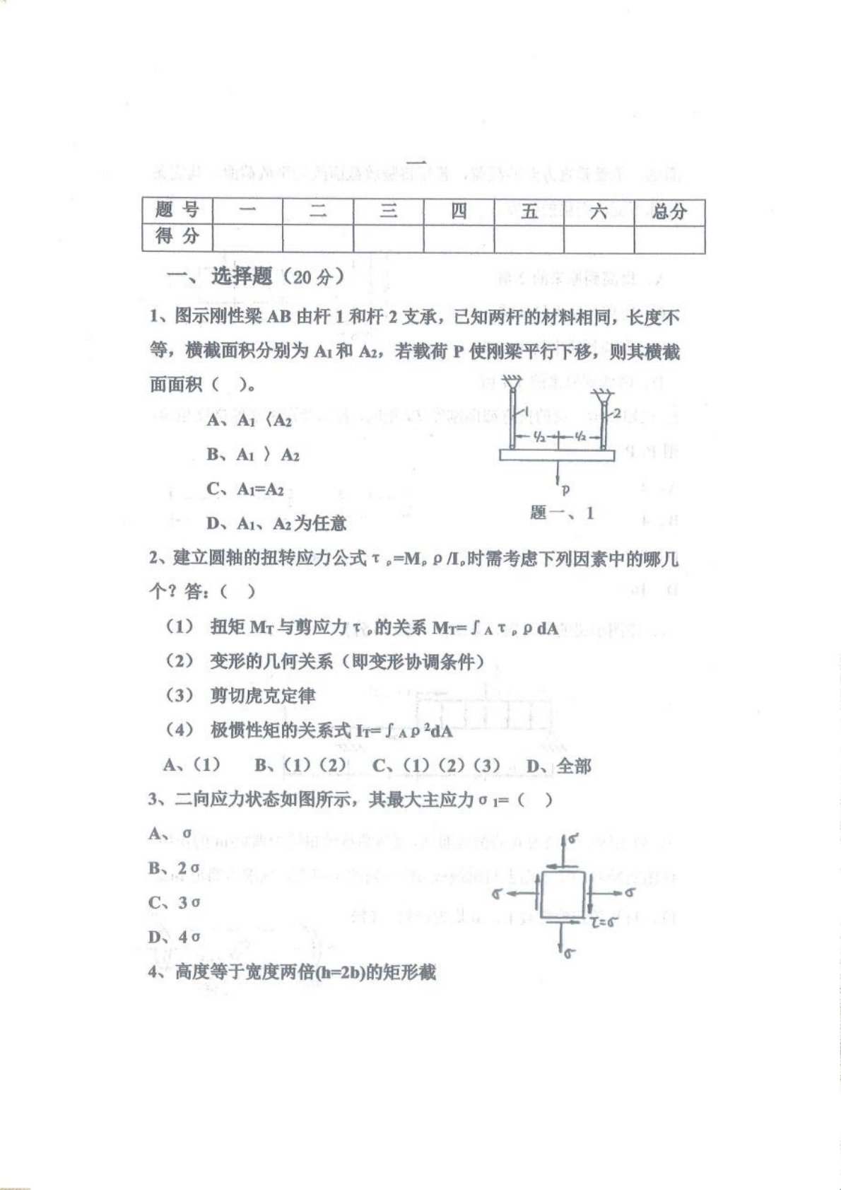 华东交通大学801材料力学试卷一