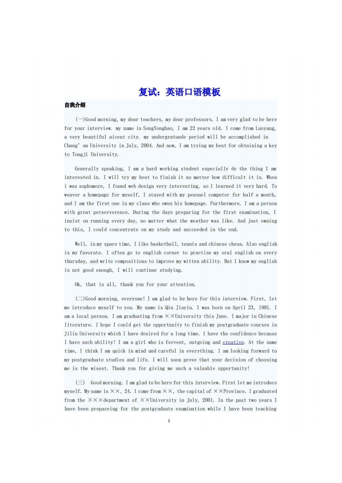 华北水利水电大学508混凝土结构与材料(复试)英语口语模板