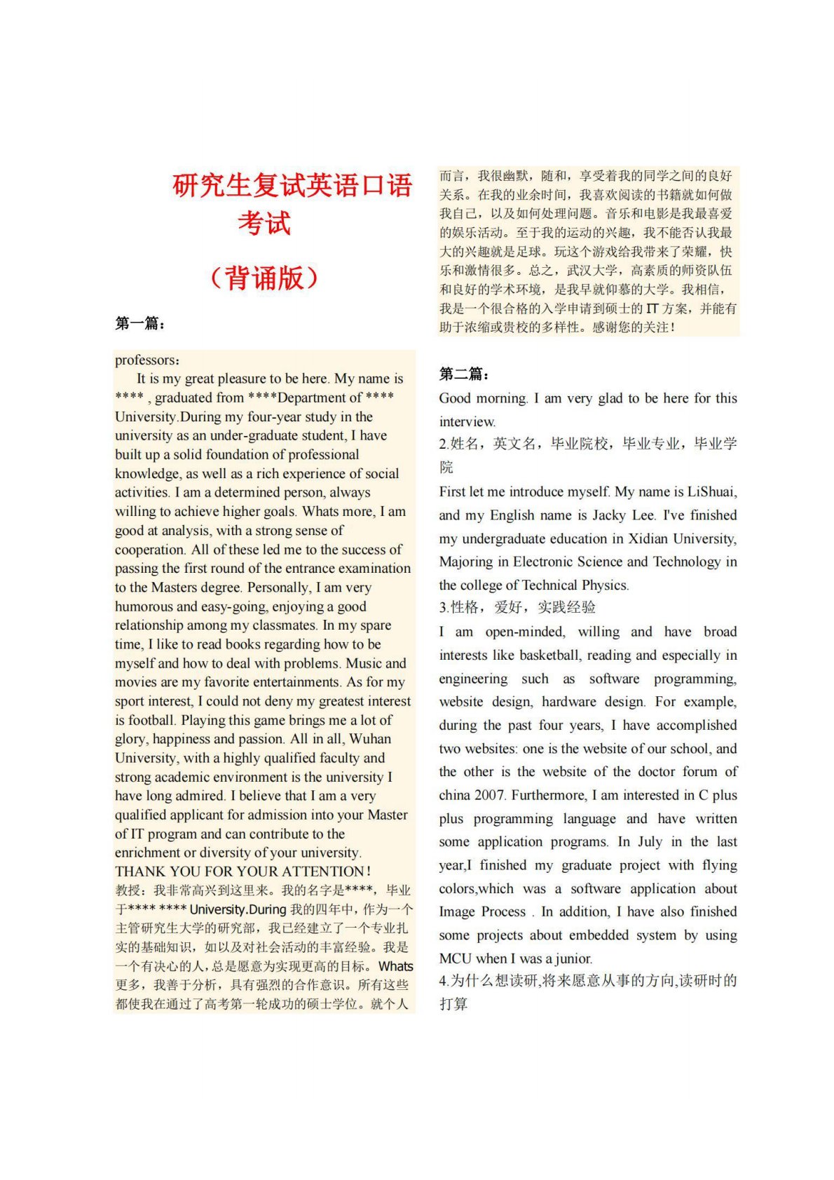 华北水利水电大学508混凝土结构与材料(复试)复试英语口语考试背诵版