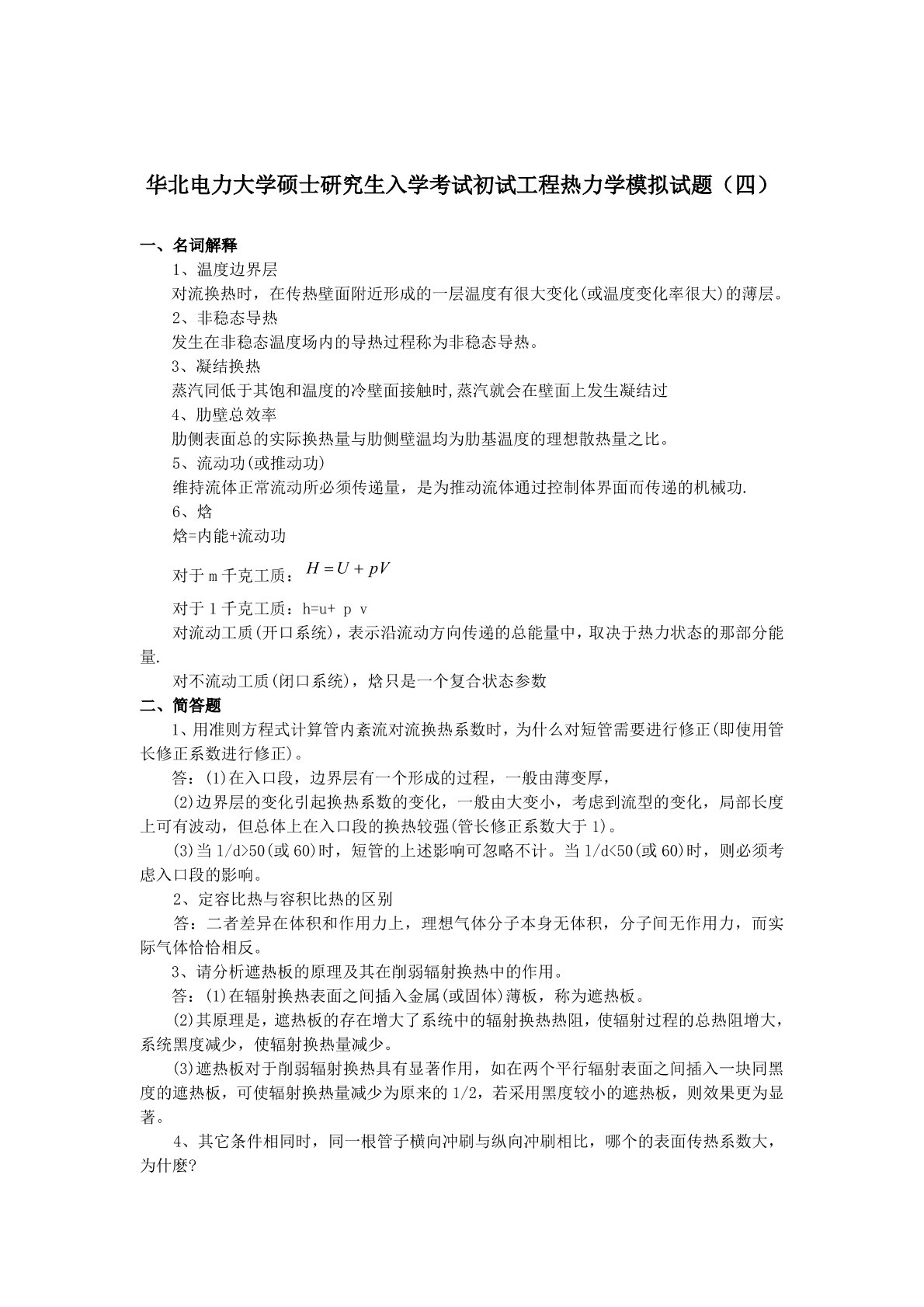 华北电力大学(北京)823热工基础模拟试题4及答案解析