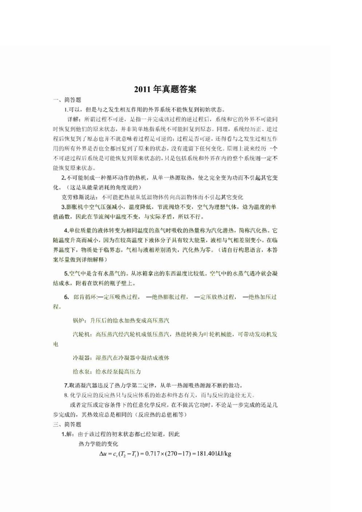 华北电力大学(北京)823热工基础2011年考研真题答案解析
